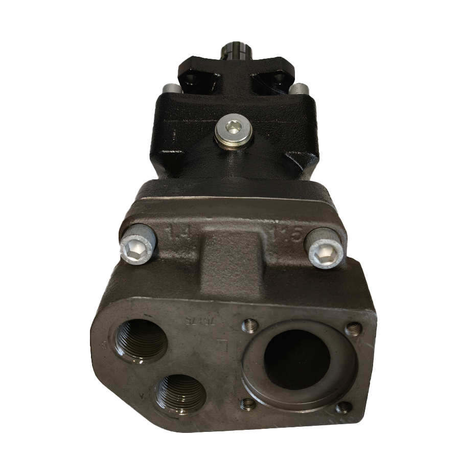 Насос аксиально-поршневой TWIN FLOW 76/76 левого вращения относится к аксиально поршневым машинам с наклонным блоком. Главной отличительной чертой данного насоса является наличие двух независимых контуров 76 см³ и 76 см³. При одном входе, у насоса имеется два выхода с разными независимыми потоками. Данный насос применяется буровых установках (разные потоки для бура и манипулятора), производительных лесовозах, комбинированных коммунальных дорожных машинах (КДМ) с одновременно работающим оборудованием и в любой другой технике, где требуется два независимых потока.