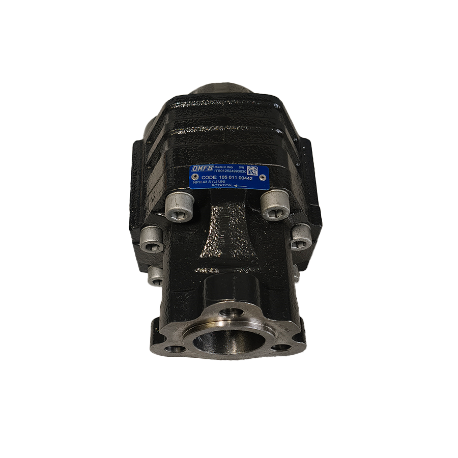 Шестерённый насос NPH 43 UNI правого вращения производства компании OMFB. Данный насос имеет широкое применение в мобильной технике, такой как автогидроподъёмники, часто используется в крановых манипуляторных установках (КМУ), бункеровозах, эвакуаторах и другой спецтехнике.